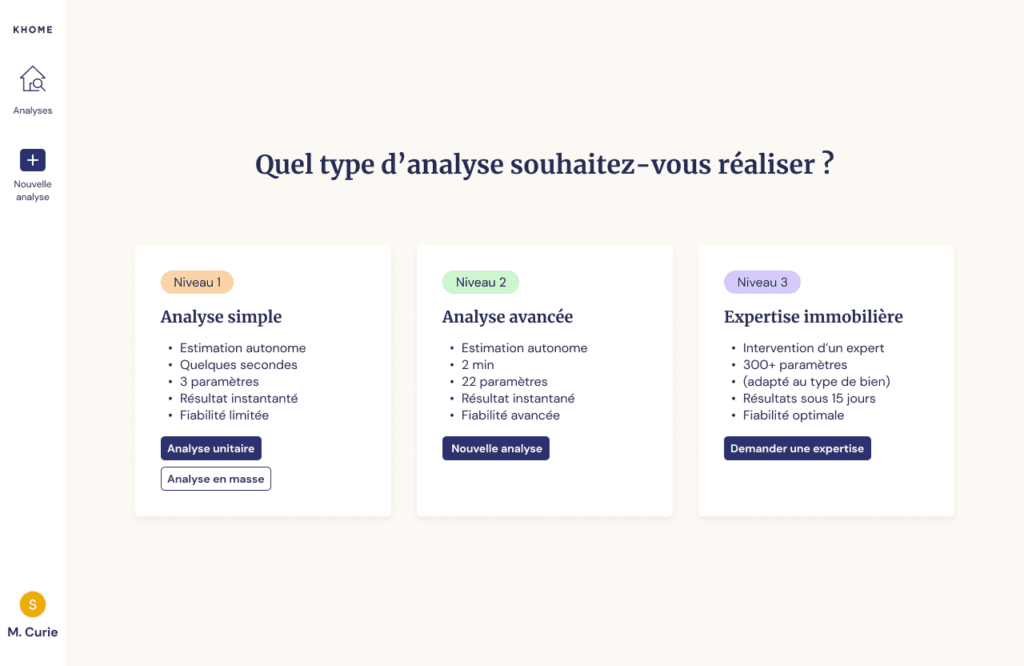 Khome propose aux conseillers bancaires une solution d’estimation immobilière. Deux produits coexistaient sans cohérence. Ma mission : les fusionner en repensant entièrement le parcours utilisateur.